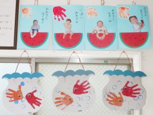 みなさんてがたをペタペタ…