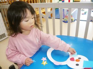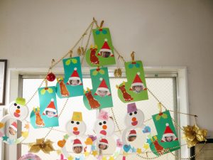 12月の製作活動で ゆきだるまと プレゼントのくつした をつくりました。 サンタさん、はやく来ないかな…