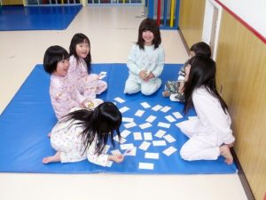 就寝まえにみんなで、かるたとり遊びをしました。