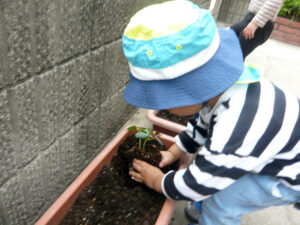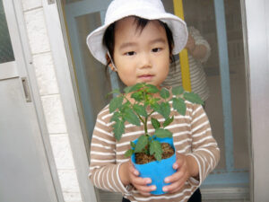ミニトマトとオクラの苗を