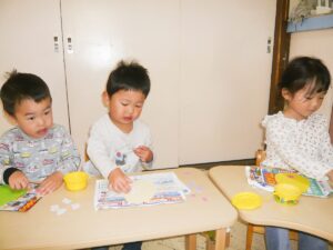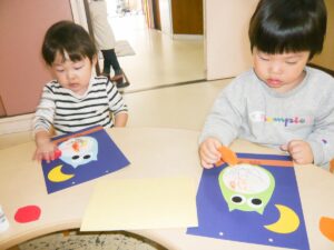 のりを使うのも上手になった2歳児さん。
