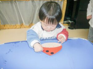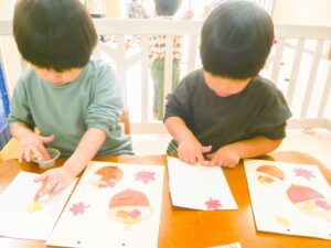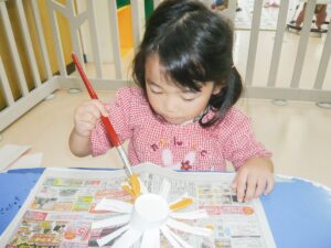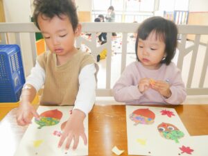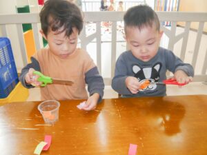 2・3歳児さんははさみや糊付けも上手に出来ました。