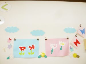 みんなでお花畑をつくったら、ちょうちょがあそびに来てくれました。