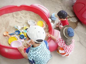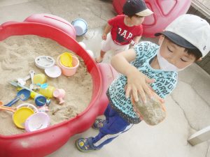みんなで楽しく砂あそび。