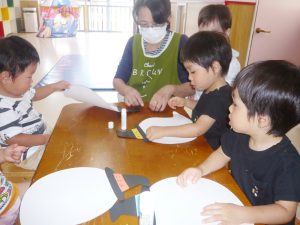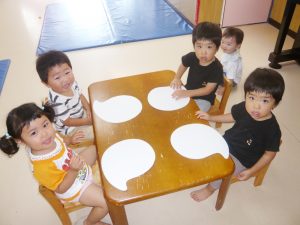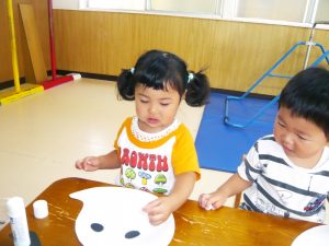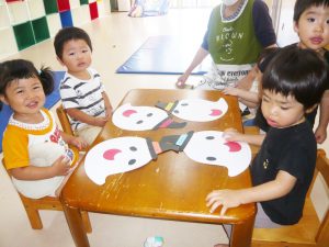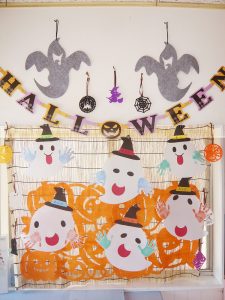 10月の製作活動で、 ハロウィーンのオバケを 作りました。 色々な表情の可愛いおばけが できあがりました。
