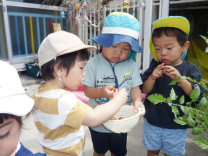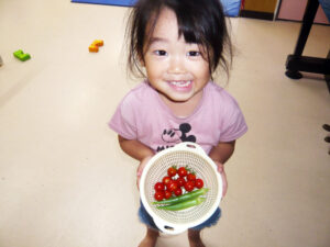 園庭に植えた菜園で、