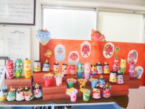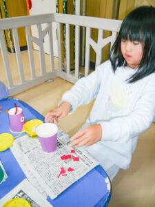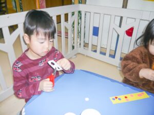 節分制作・豆まきを行いました👹 2023/02/05 せつぶんの製作では年齢に応じ てハサミや折り紙をちぎって 糊づけ、シールはりなどで 様々な鬼が出来上がりました。 「どこにはろうかな」 「可愛い顔にしたい」 など色々と考えながら取り組んでいます。