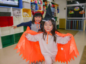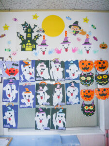 10月の製作でハロウィンの飾りつけを行いました。
